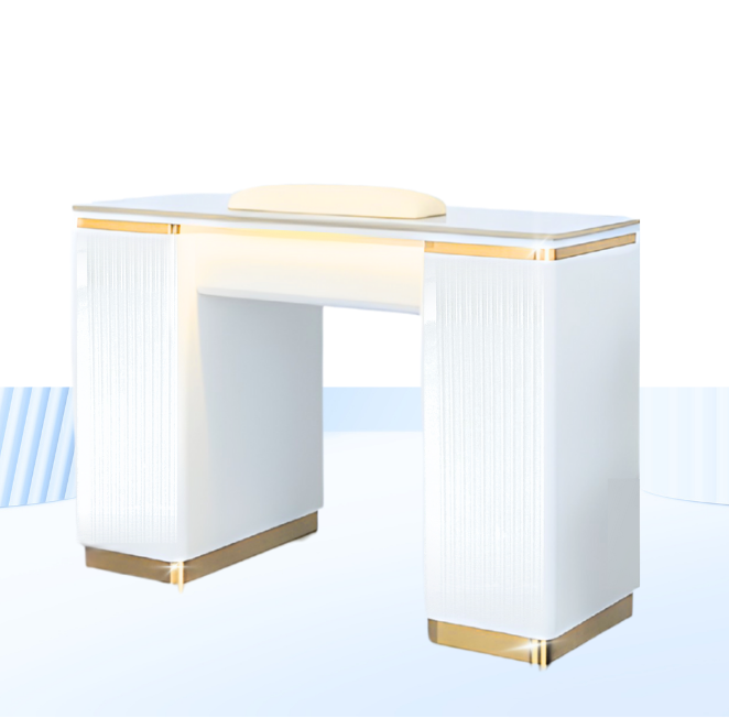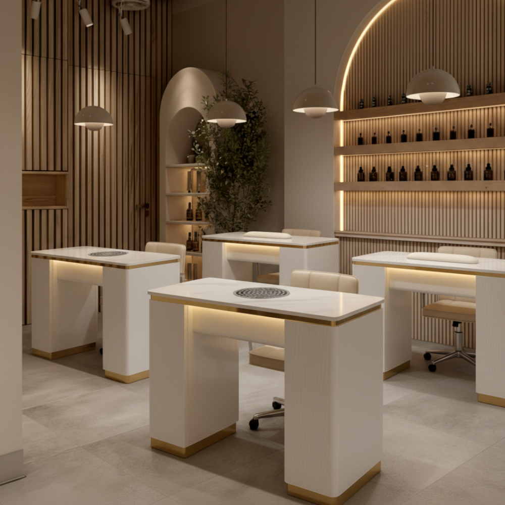 Double White Gold Manicure Tables for Modern Multi-Seat Salons