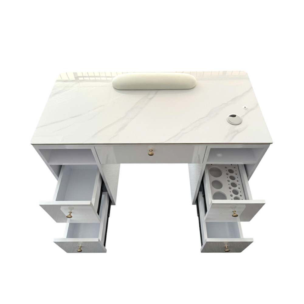 This model is perfect for salon owners who value efficiency and a light footprint—from boutique studios to home-based or private suite environments. It lets you deliver a professional manicure experience without dominating the room. From the first touch, the Aurora Manicure Nail Table sets the standard for luxury and functionality found exclusively at your nail salon. Thoughtfully crafted with a stunning high-gloss and acetone-resistant , and a convenient movable storage unit, the Aurora Manicure Nail Table is the ultimate choice for luxurious style and long-lasting durability.