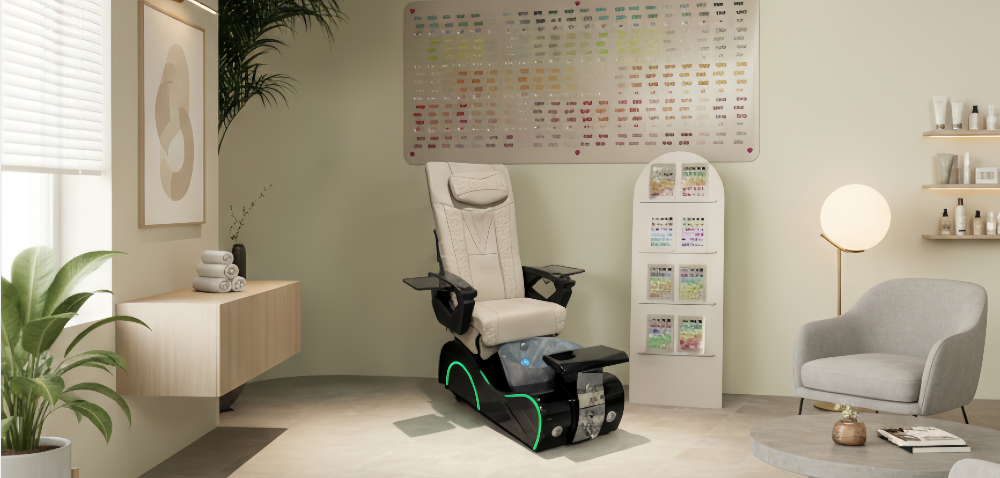 The spa base incorporates professional-grade features such as air-bubble massage, a UV/LED-friendly cushioned footrest, odor-reducing ventilation, a hot-and-cold water system, and a crack-resistant gel bowl illuminated by adjustable LED lighting. Engineered for consistent daily use, this model meets ETL & UL safety standards, ensuring long-term reliability.