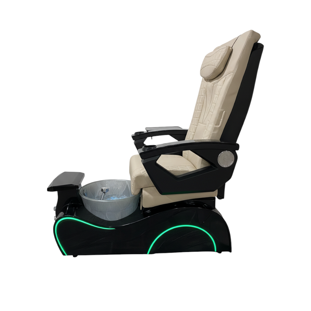 Clients enjoy exceptional comfort with acetone-resistant PU leather, heated back massage, and a reclining seat designed for long sessions. Technicians benefit from intuitive controls at the armrest, USB charging, a secure phone holder, cup tray, and practical storage elements that keep workflow organized and efficient.